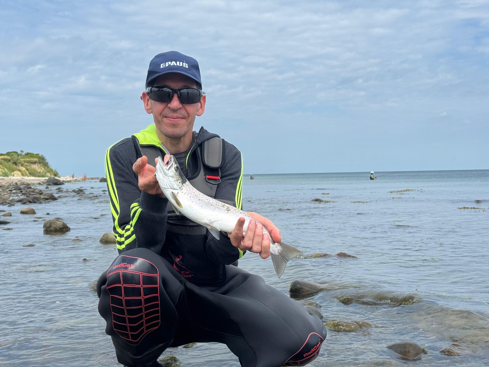 Großenbrode, 18.01.2020 Die Temperaturen bewegen sich derzeit deutlich im einstelligen Plusbereich und auch die Wassertemperatur liegt an der Ostseeküste vor Fehmarn bei für Januar ungewöhnlich milden 5 Grad. Selbst die ersten Sandaale sind bereits unterwegs und jagen im Flachwasser über den Sandbänken. Genau in solchen Situationen gilt es am Wasser zu sein und sich an den richtigen Stellen zu befinden. Guide Elia hat am Samstag mal wieder den richtigen Spürsinn bewiesen und unsere Gäste zum Fisch geführt. Silberblanke Meerforellen zwischen 45 und 60 Zentimetern kamen aus dem Wasser. Was für ein toller Start in das Meerforellenjahr 2020!